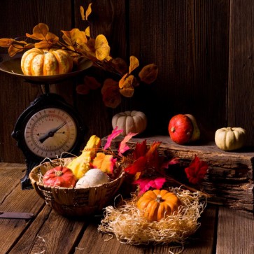 Photography Backdrops Pumpkin Wood Floor Red Leaf Thanksgiving Day Background