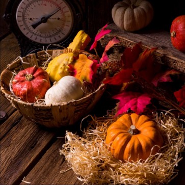 Photography Backdrops Red Leaf Pumpkin Thanksgiving Day Background