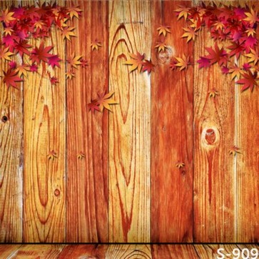 Photography Backdrops Red Maple Leaf Orange Vertical Wood Floor Background