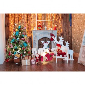 Christmas Photography Backdrops Decoration Christmas Tree Yellow Lights Wood Floor Background