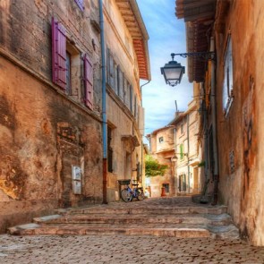 Photography Background Orange House Small Town Alley Street View Backdrops